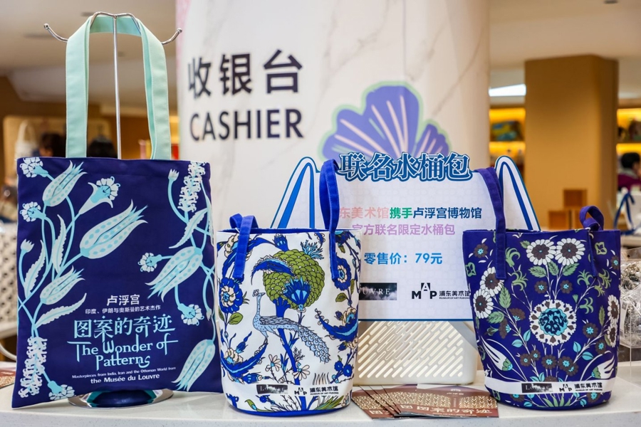 卢浮宫与浦东美术馆官方联名水桶包、帆布包是本次新品发布的核心亮点。水桶包推出蓝、白两款配色,图案灵感分别来源于卢浮宫大展中的展品《花束图盘》和《孔雀图盘》。设计师陈杰妮在现场分享道:“深色款可以视作秋冬款,沉稳中透着典雅;浅色款则带来春的气息,轻盈灵动。”细腻的纹样勾勒出艺术的美感,实用的包型设计又完美适配日常场景,让博物馆的艺术珍藏走进生活。与此同时,“非常大师”系列艺术家毛绒挂件也正式发布。曾经的爆款IP——梵高、莫奈、毕加索、达·芬奇等艺术大师,以萌趣可爱的毛绒形象集体亮相,那些在艺术史中高不可攀的名字,此刻化作掌心可握的柔软存在,让经典艺术变得亲切可爱,成为年轻人表达艺术态度的新方式。