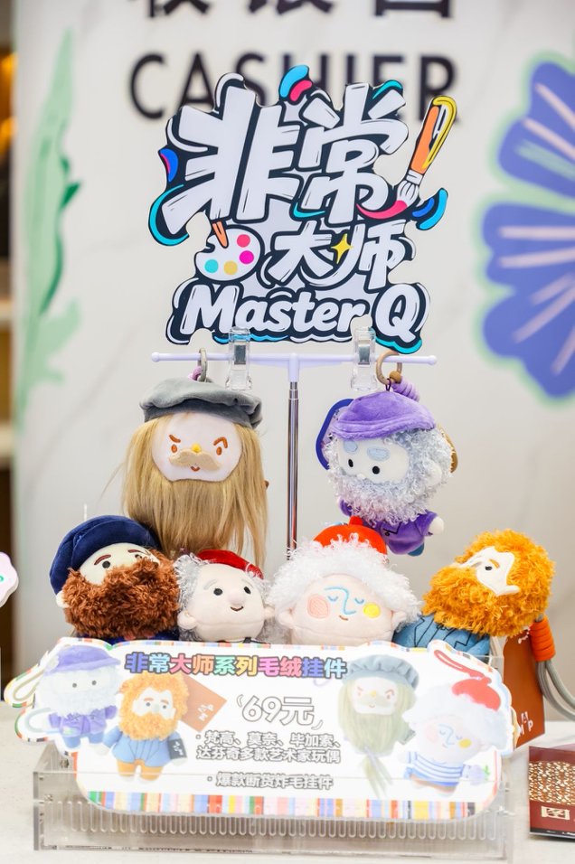 展售品类丰富多元,既有当前馆内卢浮宫大展、毕加索大展的主题文创,也有往期现象级大展奥赛展的爆款周边惊喜返场。那个曾让无数观众忍俊不禁的“炸毛梵高”玩偶,以其夸张的造型和憨态可掬的表情,成为展台上的焦点。